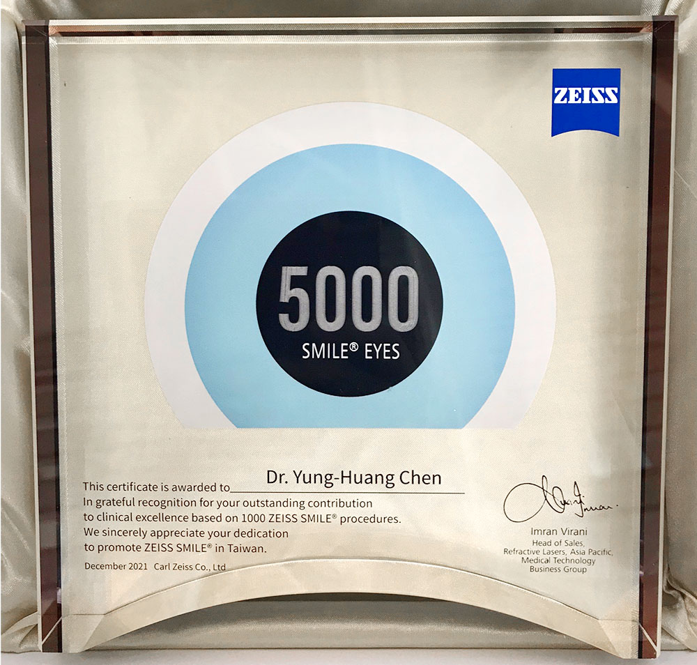 狂賀【蔡司原廠認證】陳永煌醫師全台最多SMILE 5000例眼睛